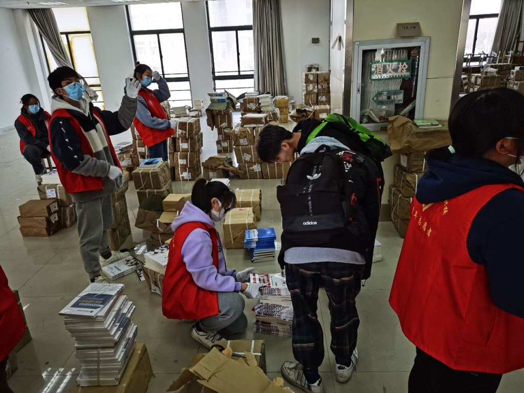 2月27下午及2月28日全天,在图书馆老师和学生志愿者的共同努力下,分批次完成了全校100余个班级的教材发放工作,共计发放教材五万四千余册。