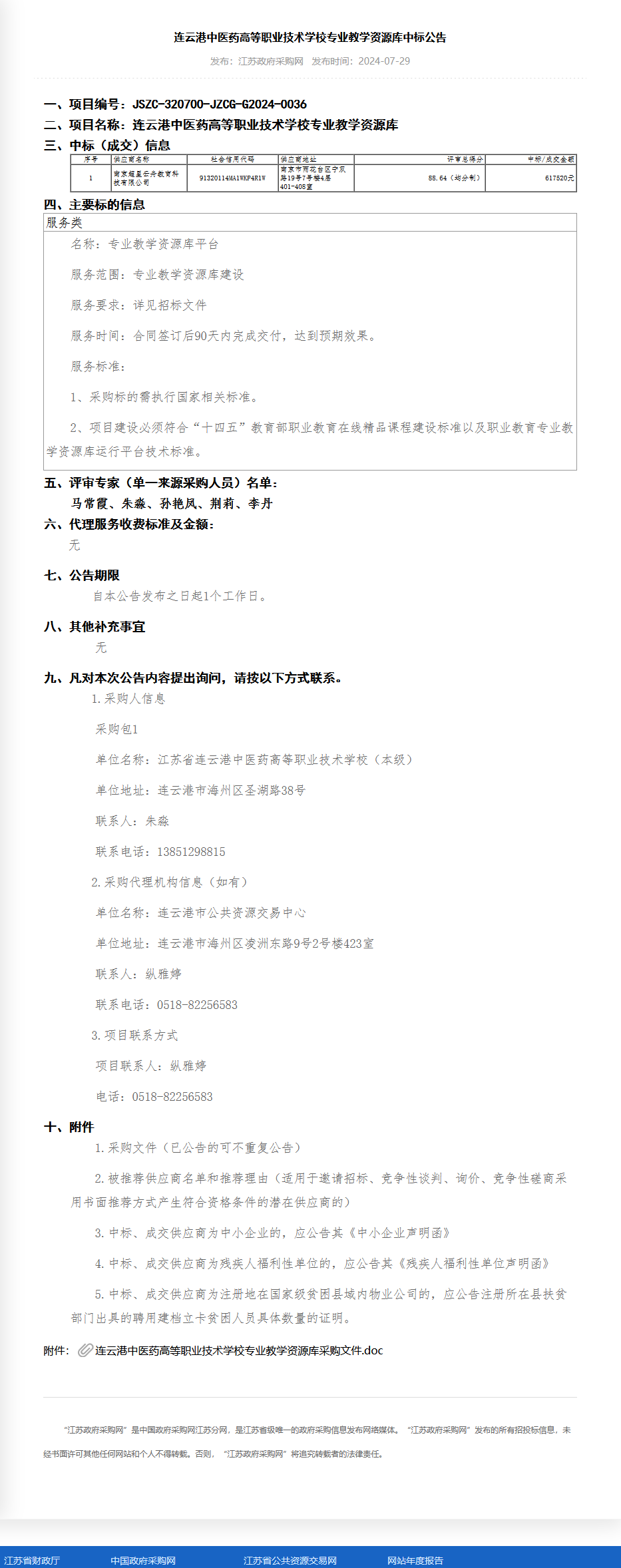 连云港中医药高等职业技术学校专业教学资源库中标公告