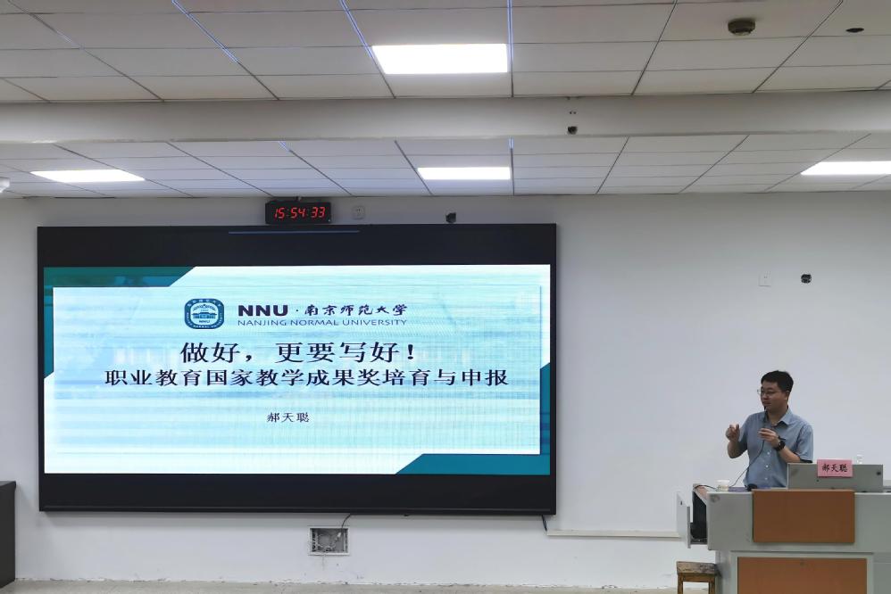 为提升教师教学成果培育与申报能力,9月18日,学校特邀南京师范大学教育科学学院郝天聪博士开展“做好,更要写好!职业教育国家教学成果奖申报与培育”专题讲座。学校校长刘旭光、副校长胡玉涛及全体专兼职教师参会,讲座由胡玉涛副校长主持。