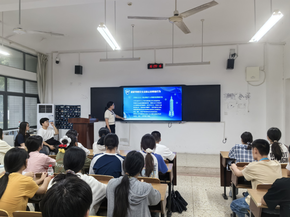 三、各班级组织召开了形式多样的网络安全主题班会以及板报宣传活动,让同学们学习网络安全知识,了解网络安全法律法规,提升网络安全意识和防护技能。针对新入学的同学,计算机教研室的专兼职教师还专门进教室开展网络安全知识讲座。