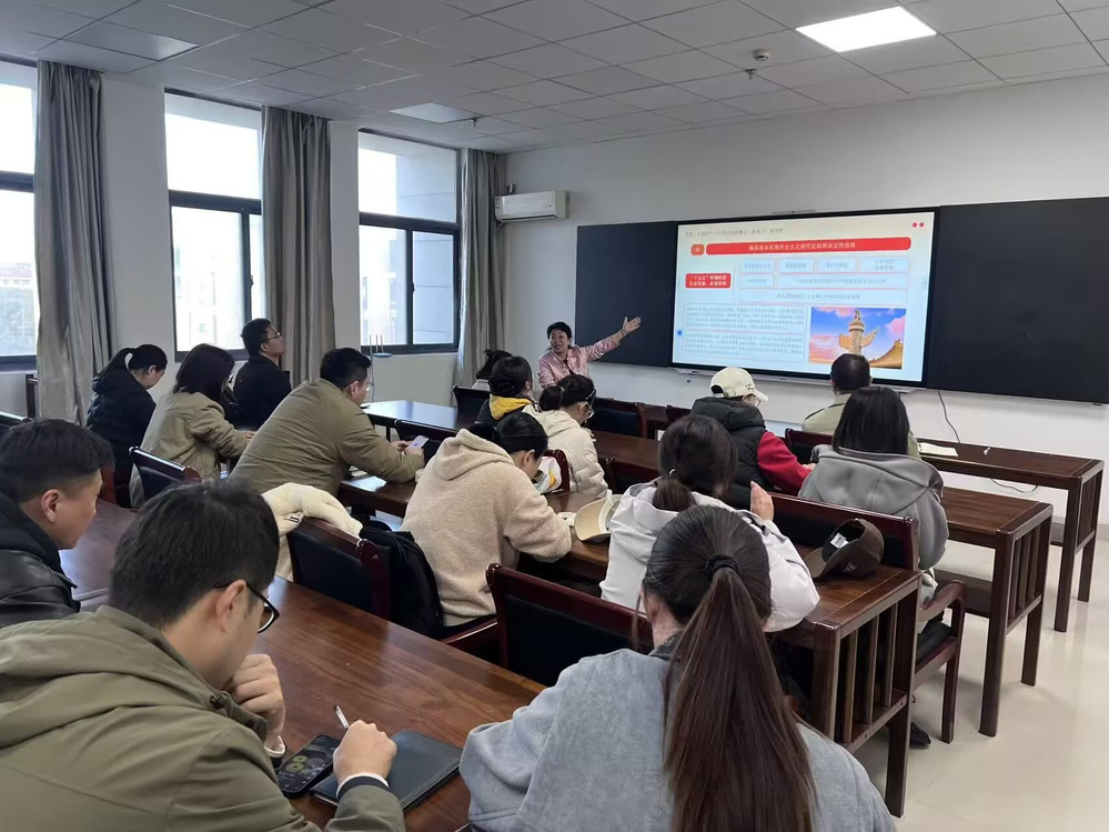 为深入学习贯彻党的二十届四中全会精神,切实把全体教师党员的思想和行动统一到党中央决策部署上来年11月10日,中医药系党支部在远志楼506开展专题党课学习。党支部书记房德芳主讲,中医药系全体教师党员参加学习。