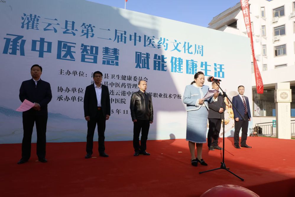 我校副校长胡必梅、教务处处长张宁、中医药系主任刘名波出席活动。胡必梅在致辞中指出,灌云县中医院作为我校附属医院,是校院协同育人与实践教学的重要平台。自成立以来,双方围绕中医药人才培养、文化传承与产业创新三大方向,持续深化合作,通过共建实训基地、共享教学资源、共研特色项目等方式,不断夯实中医药人才基础,为区域中医药事业注入新动力,也为民众健康与产业升级提供坚实支撑。同时也表示,此次文化周活动是校院双方推进师资融合与资源共享的重要契机,既促进学校精准对接社会健康需求,也为未来深度合作搭建了展示与交流的平台。