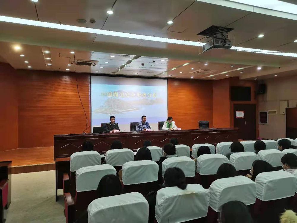 通过播放国防宣传视频,姜处长向同学们展示了近年来国防建设取得的巨大成就,围绕当前国家周边国防形势这一主题,从国防环境、周边邻国、海洋权益争端等方面阐述了当前我国国防安全的基本情况。姜处长勉励同学们好好学习、奋发向上,关注国防了解国防,将来为实现强军目标贡献一份力量。