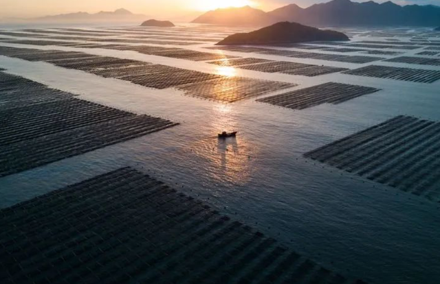 在福建省宁德市霞浦县三沙镇,渔船在夕阳余晖中归港(2020年11月26日摄,无人机照片)。新华社记者 宋为伟 摄