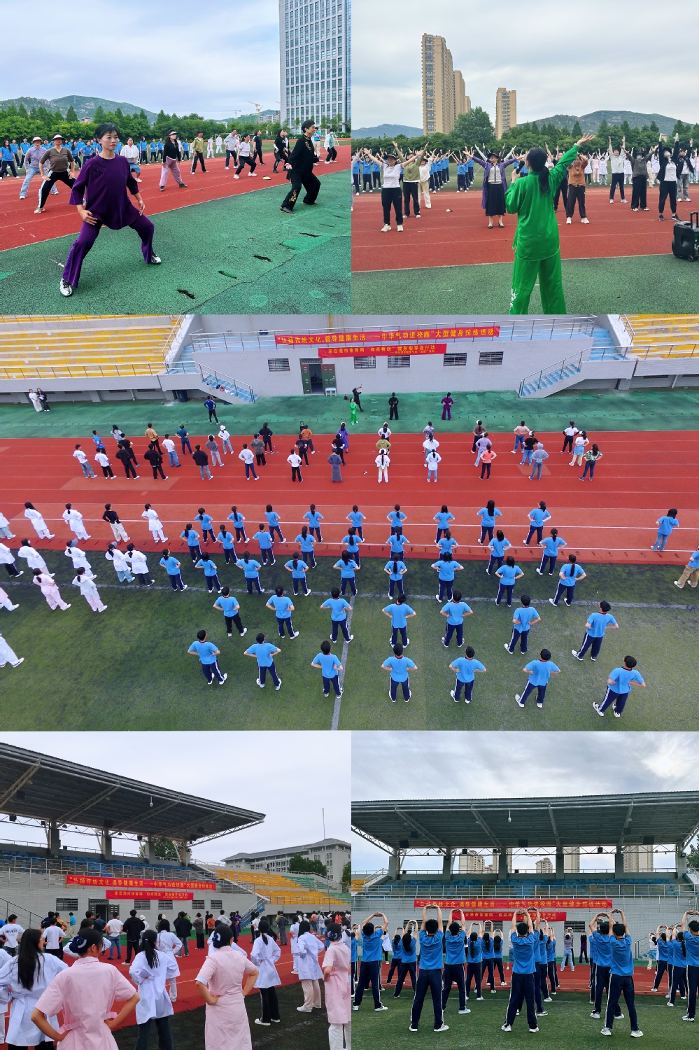 为进一步推广中医养生与健身,同时也为激发工会新活力,不断提升教职工身体素质,释放工作压力、激发工作热情、提升工作效能,从而引导教职工养成健康生活的好习惯,在市体育局开展的健身气功“五进”活动的统一部署下,5月29日下午,由市健身气功协会会长刘传祥老师携副会长蒋总教练等一行4人莅临学校为教职工进行了现场教学指导,校工会组织来自全校14个工会小组的教职员工及各系部推荐的近300名学生参加了本次健身拉练活动。
