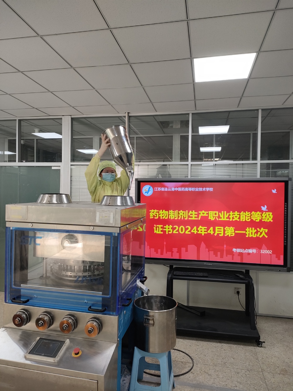 4月19-20日,学校圆满完成2024年药物制剂生产“1+X”职业技能等级证书认证工作。药学系组织开展药物制剂生产“1+X”职业技能等级证书考核,考核内容包括理论知识和技能操作,药学类专业10名学生参加此次考核。