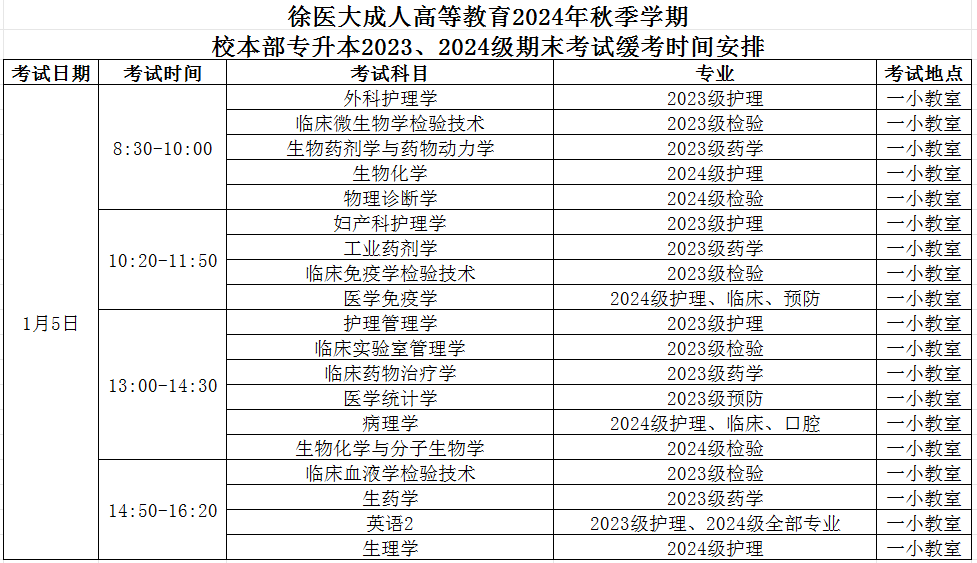 2、2024年秋季课程专升本2023、2024级期末考试补考时间安排