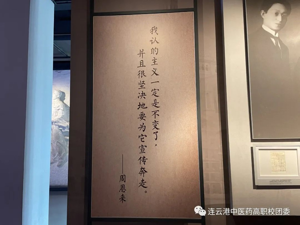 同学们着重参观了周恩来生平业绩的陈列馆。周恩来生平业绩陈列馆由立志求学、革命历程、建设伟业、晚年岁月、风范永存共五个部分组成,用图片、油画、雕塑及声光电等多种展陈列形式,再现了周恩来光辉的一生。