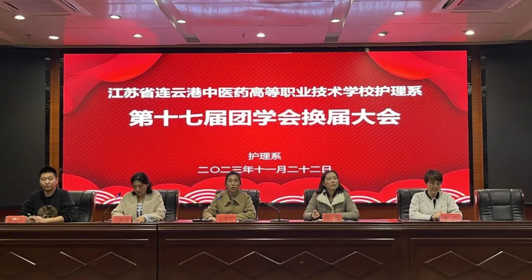 2023年11月22日下午,护理系第十七届团学会换届大会于远志楼一楼学术报告厅进行。出席此次大会的有校团委书记石薷月、护理系党支部书记顾娇、护理系党支部副书记刘海波、指导老师李卉和顾添明。