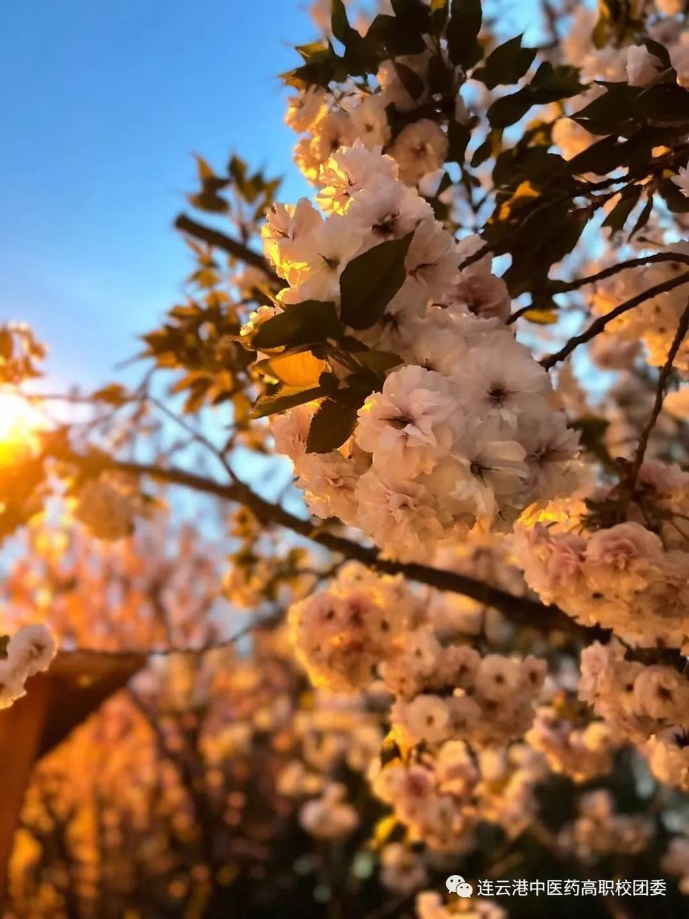 初樱动时艳,擅藻灼辉芳,细叶未开蕾,红花已发光。