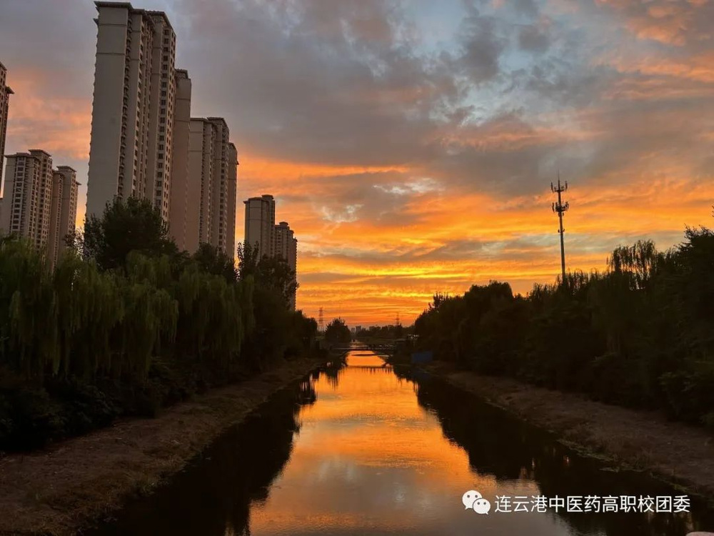 夕阳余晖洒满河面,水面上金波荡漾,倒映出金色的天际线。