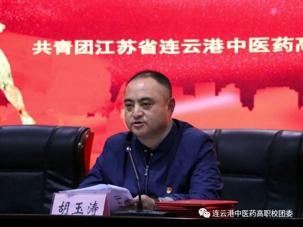 党委委员、副校长胡玉涛宣读了《关于表彰江苏省连云港中医药高等职业技术学校2022年度“五四红旗团支部”、“五四红旗团支书”、“优秀共青团干部”、“优秀共青团员”的决定》。