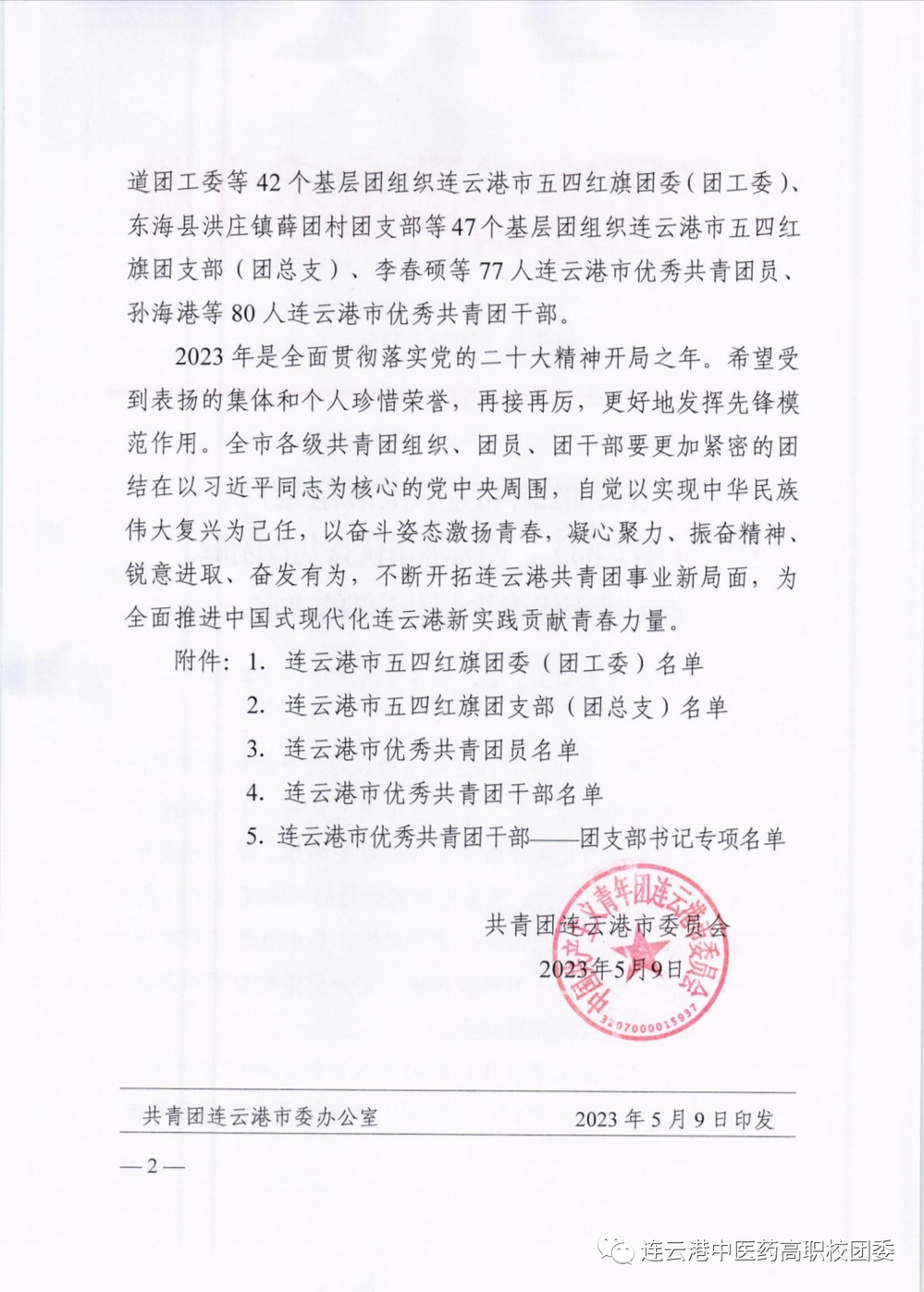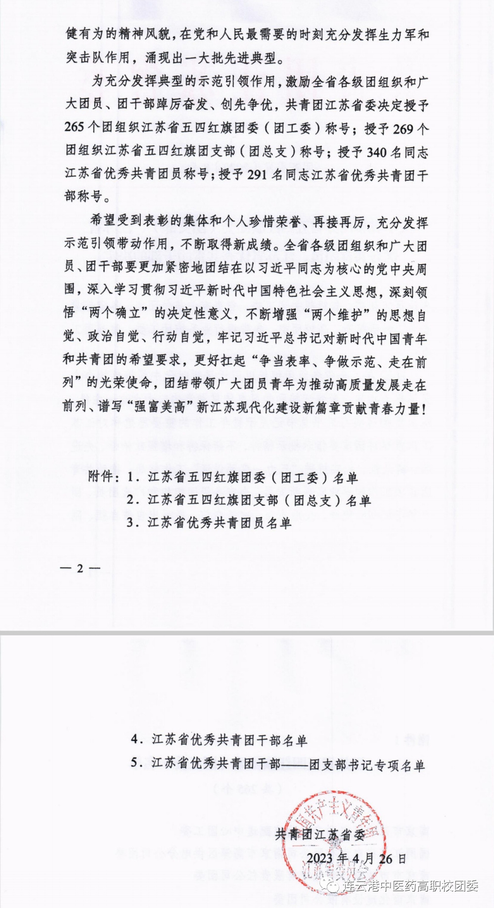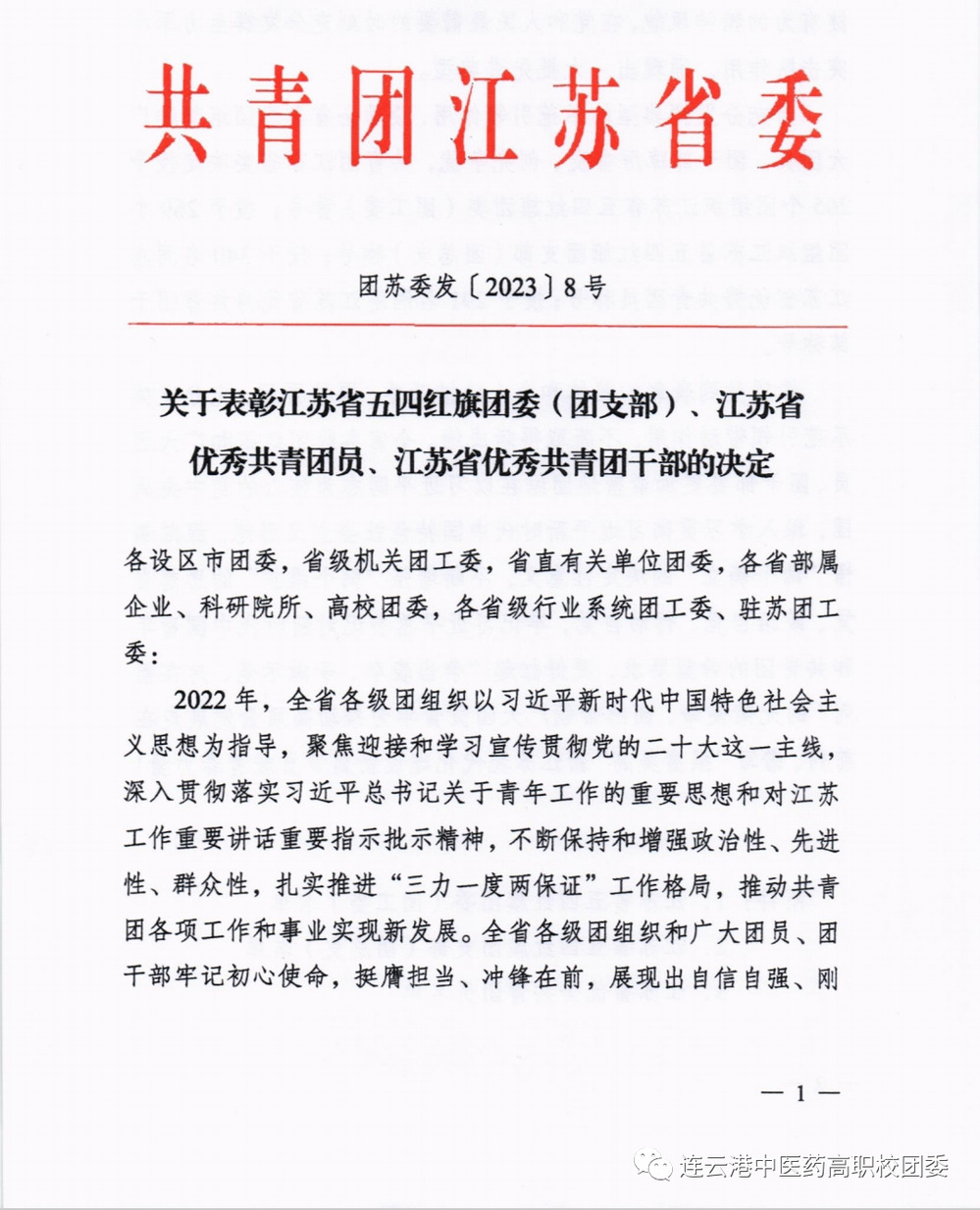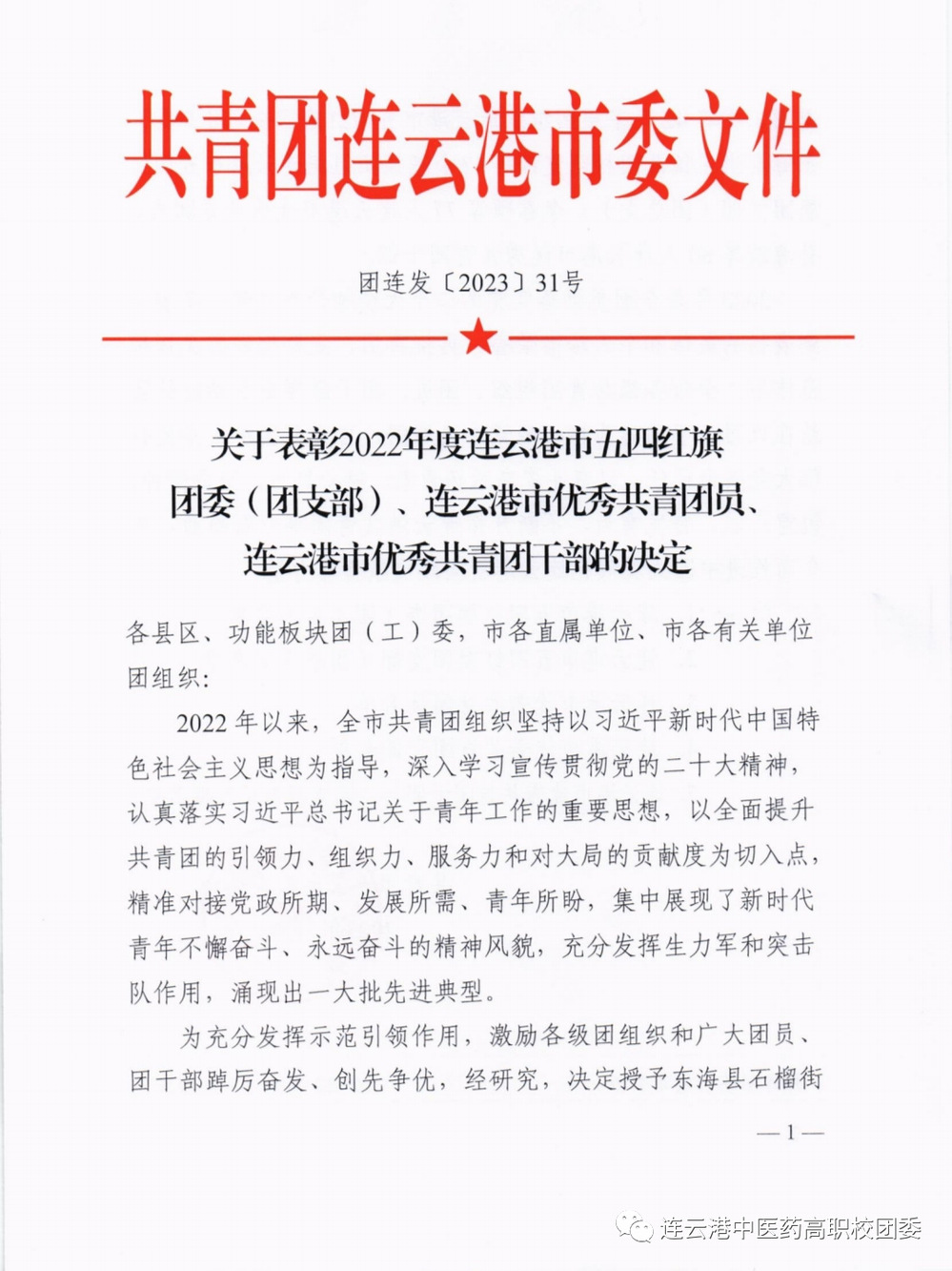 近日,共青团江苏省委发布了《共青团江苏省委关于表彰江苏省五四红旗团委(团支部)、江苏省优秀共青团员、江苏省优秀共青团干部的决定》,共青团连云港市委发布了《关于表彰2022年度连云港市五四红旗团委(团支部)、连云港市优秀共青团员、连云港市优秀共青团干部的决定》。其中,我校个人和集体获得表彰,一起来看看吧~