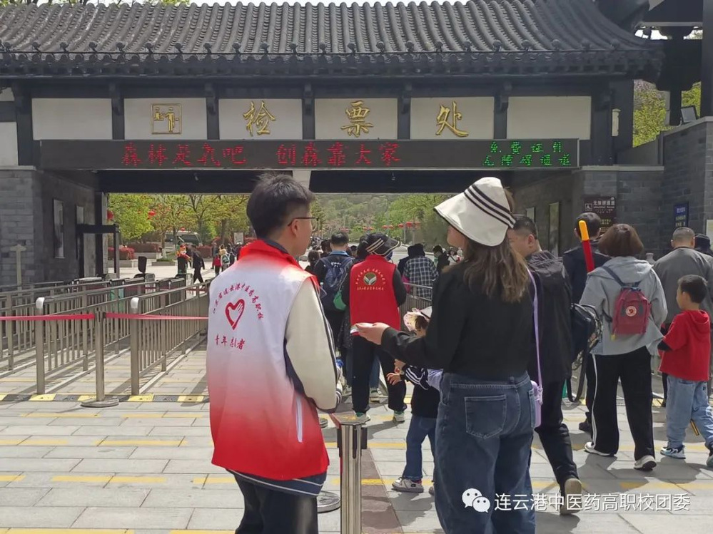 2023年4月15日上午,我校青年志愿者协会组织了20名志愿者在花果山景区开展了以“志愿同行,文明同行”为主题的志愿服务活动。