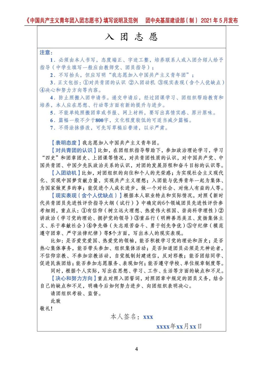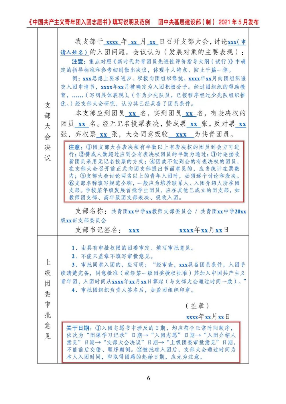 工作中发现,有的地方在填写、审核入团志愿书过程中存在指导不具体、填写不规范、审核不细致、审批不严谨等问题,影响了发展团员的质量和工作的严肃性、规范性。为加强具体工作指导,团中央基层建设部制定了入团志愿书填写说明及范例,供广大基层团组织、团干部和入团积极分子学习掌握。