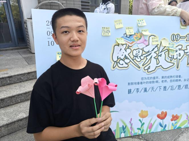 活动现场,同学们积极参与,用自己的双手制作出精美的手工艺品。有的同学用彩纸折出了美丽的花朵,寓意着老师们的辛勤付出如花朵般绽放;在制作过程中,同学们全神贯注,用心地将自己对老师的感恩之情融入到每一个细节之中。这些手工艺品虽然简单,却饱含着同学们对老师的深深敬意和爱戴之情。我们还设置了写祝福的环节,邀请现场同学在便签上写下对老师感恩的话语,并贴在了展板上。一朝沐杏雨,一生念师恩。祝愿全天下的老师节日快乐!