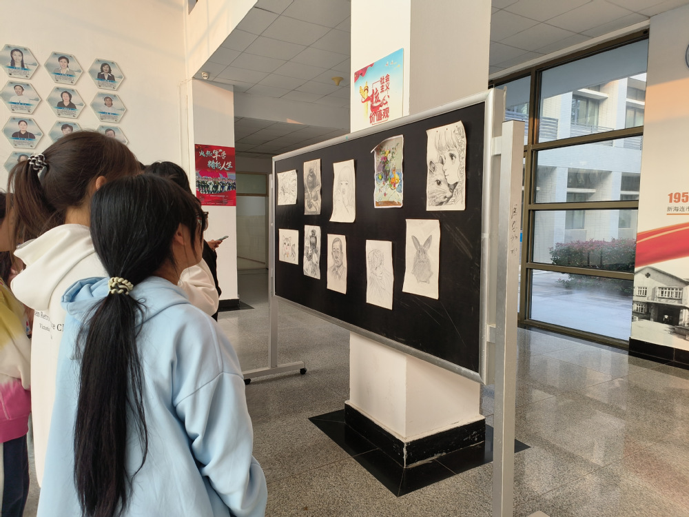 展览内容丰富,涵盖油画、水彩、国画、版画等多个艺术门类,共计展出作品数十幅,均为在校学生的原创佳作。活动当天,益智楼大厅内人头攒动,观众们被一幅幅色彩斑斓、构思巧妙的画作深深吸引。作者们通过作品讲述了自己的故事,传达了对生活的热爱、对未来的憧憬。