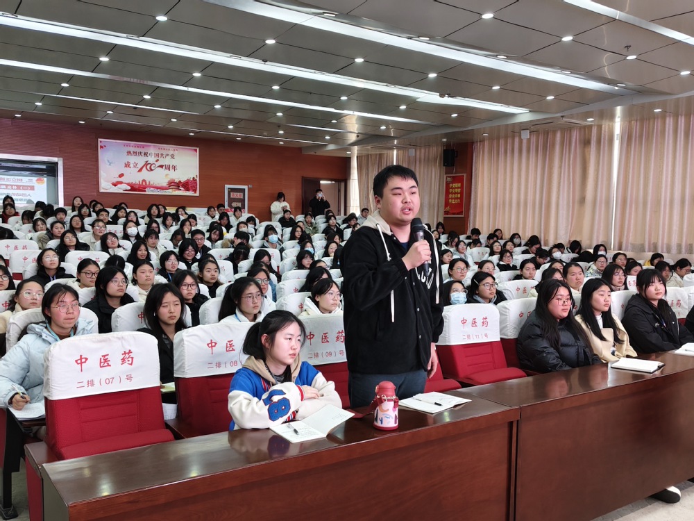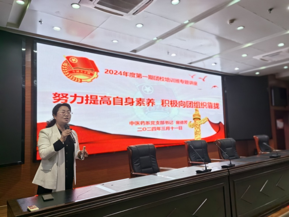 团校讲堂第一讲由中医药系党支部书记房德芳志以“提高综合素质,积极向团组织靠拢”为主题授课,她从四个方面与团校学子们深入交流。她表示近年来团委工作扎实推进,团员质量不断提升,涌现出了一批优秀青年,希望团员青年从团校课程中汲取营养和知识,牢记青年责任,不忘使命初心,在学习生活中真正发挥模范带头作用,团结广大青年学生为新时代党和国家事业发展作出新的更大的贡献。
