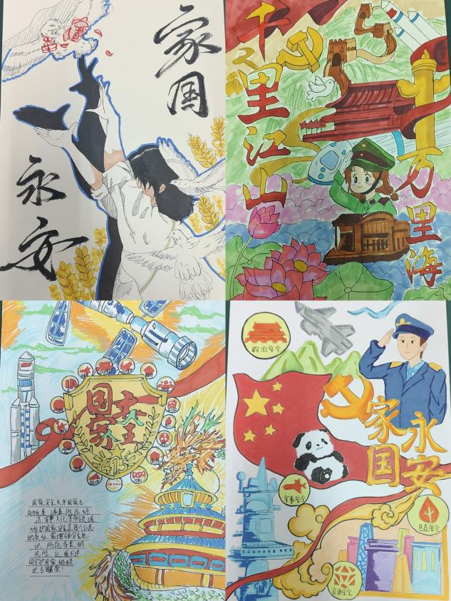在活动期间,学生们积极参与,围绕总体国家安全观主题,通过多样化形式开展精心创作。在作品征集阶段,参赛学生紧扣主题,在书法、美术、摄影等艺术领域充分展现创意。书法作品涵盖多种书体,风格各异,有的笔力刚劲,有的线条飘逸。例如,有学生以行书书写“苟利国家生死以,岂因祸福避趋之,责任为天,和平安全” 的警句,通过笔锋的灵动变化,生动诠释对国家安全的深刻理解及对国家的忠诚热爱。美术作品形式多样,色彩丰富且布局精巧。学生们将飘扬的国旗、庄严的国徽、守护的卫士等与国家安全相关的元素融入画作,每一处线条勾勒、每一抹色彩填充,都饱含着对国家安全的深刻认知与守护意志。摄影作品聚焦交通安全、消防安全等与民众生活紧密相连的场景,以镜头捕捉基层工作者守护平安的感人瞬间,传递 “国家安全,人人有责” 的理念。
