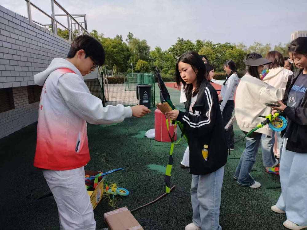 活动开始,同学们来到风筝挑选处,挑选自己心仪的风筝,俩人一个小组在志愿者的指导下完成组装。来到操场上的他们步伐轻快且有力,小组成员默契合作,一位同学根据风力大小和方向灵活调整奔跑速度,为风筝提供初始上升动力,另一位同学双手紧握风筝线,眼神紧紧跟随风筝的飞行轨迹,通过适时地收放风筝线,精准控制风筝的飞行高度与方向。五彩斑斓的风筝在空中翩翩起舞,形成了一道亮丽的风景线。风筝飞起,承载着大家的梦想与对未来的美好期许。活动结束后,每位同学们都获得了一份精美的风筝书签作为奖励,并与志愿者们共同清理场地,爱护校园环境。