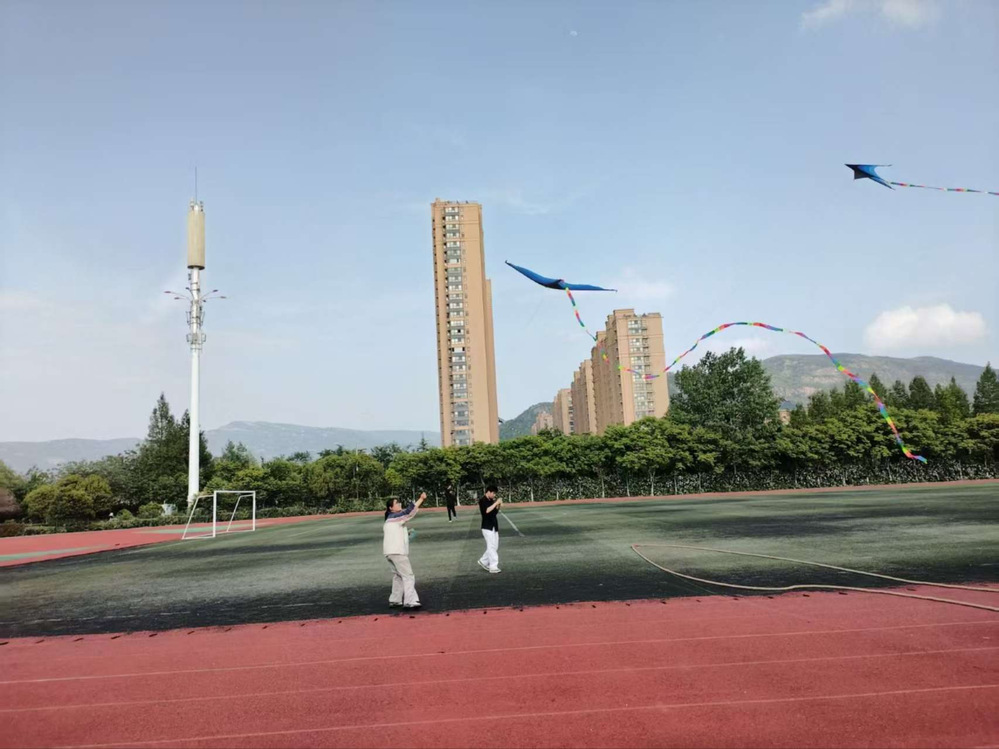 为了丰富校园文化生活,增进学生之间的交流与合作,此次活动以传统风筝文化为载体,让同学们走出枯燥的教室和宿舍在蓝天白云下舒展身心,于协作实践中深化友谊,为校园生活增添了一抹灵动的春日色彩。我校近日在操场举办了“春日逐风,筝舞蓝天”活动。