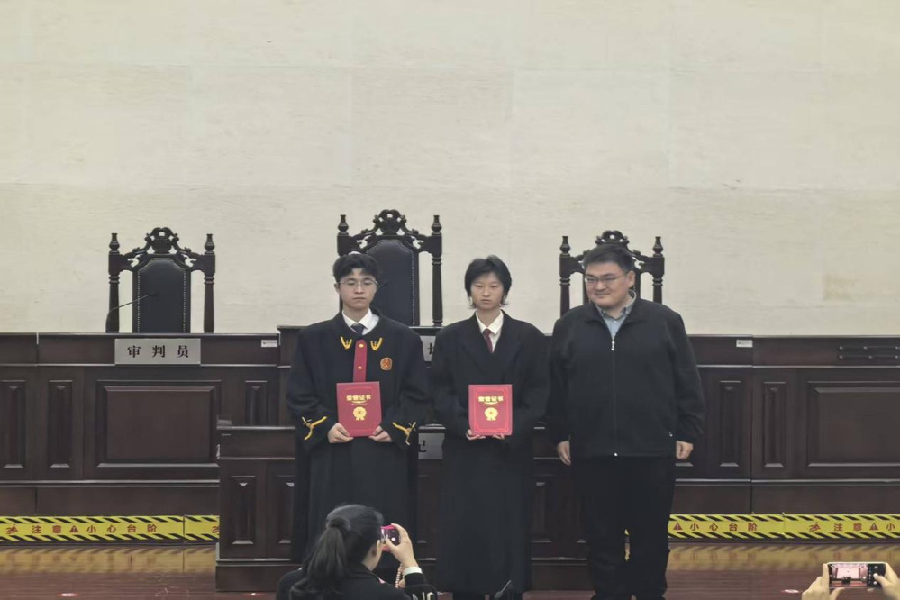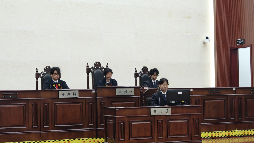 此外,我校还派出多名学生志愿者承担法警、后勤保障、道具管理、现场协调等工作。他们统一着装、精神饱满、服务周到,有效保障了比赛的顺利进行,展现了我校学生良好的组织纪律性与团队协作精神。