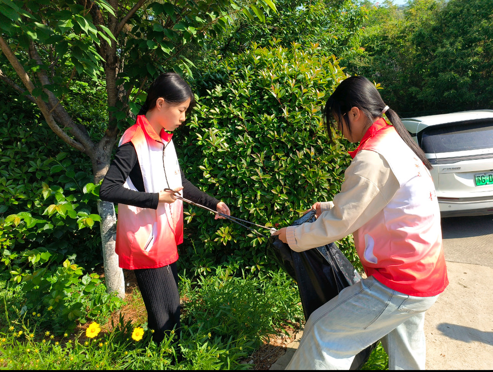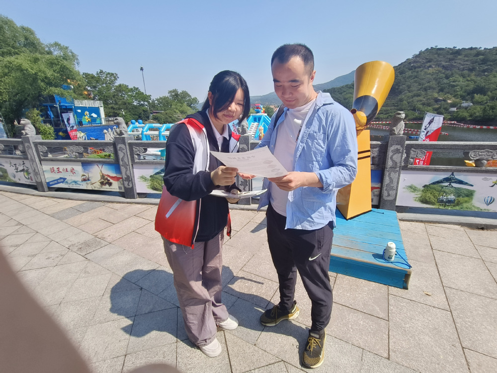 环保行动也是志愿者工作的重要一环。他们穿梭在景区的各个角落,化身“环保小卫士”。看到地上有垃圾,他们立刻弯腰捡起;遇到正准备随手丢弃垃圾的游客,他们会上前礼貌提醒:“您好,麻烦将垃圾放入垃圾桶,让我们一起守护花果山的美丽环境,谢谢您!”在他们的带动下,越来越多的游客自觉参与到环保行动中,共同维护景区的整洁。