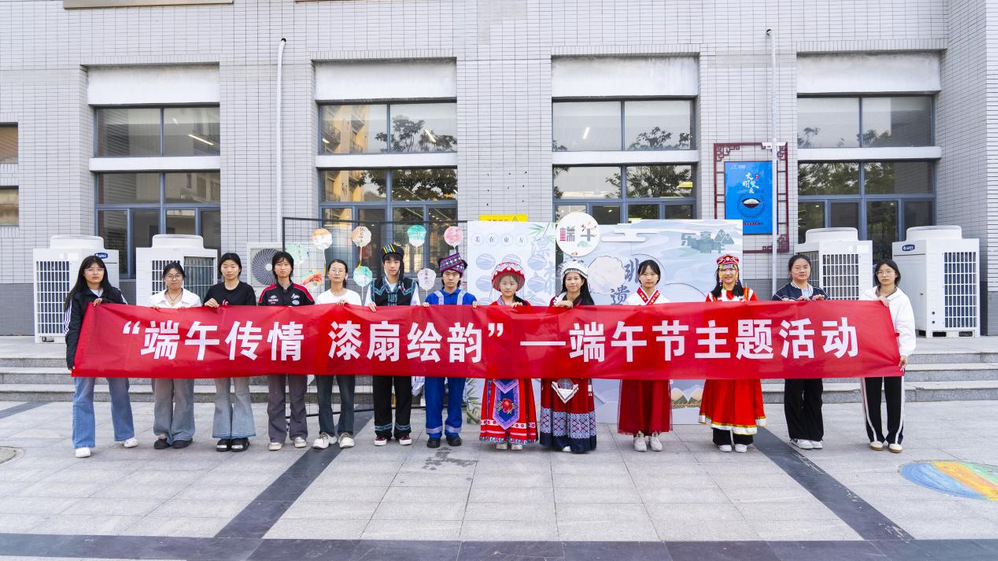 历史长河,奔流浩荡,文脉传承,弦歌不辍。非物质文化遗产作为中华优秀传统文化的璀璨瑰宝,承载着我国各族人民的智慧与情感。为弘扬中华优秀传统文化,丰富校园文化生活,激发青年学子的创新精神与艺术潜能,并促进各族学生交流互鉴,2025年5月27日,校团委和宣传教育处组织开展了“端午传情·漆扇绘韵”主题实践活动。本次活动面向全体在校学生,吸引了包括汉族与少数民族学生在内的众多学子踊跃参与。