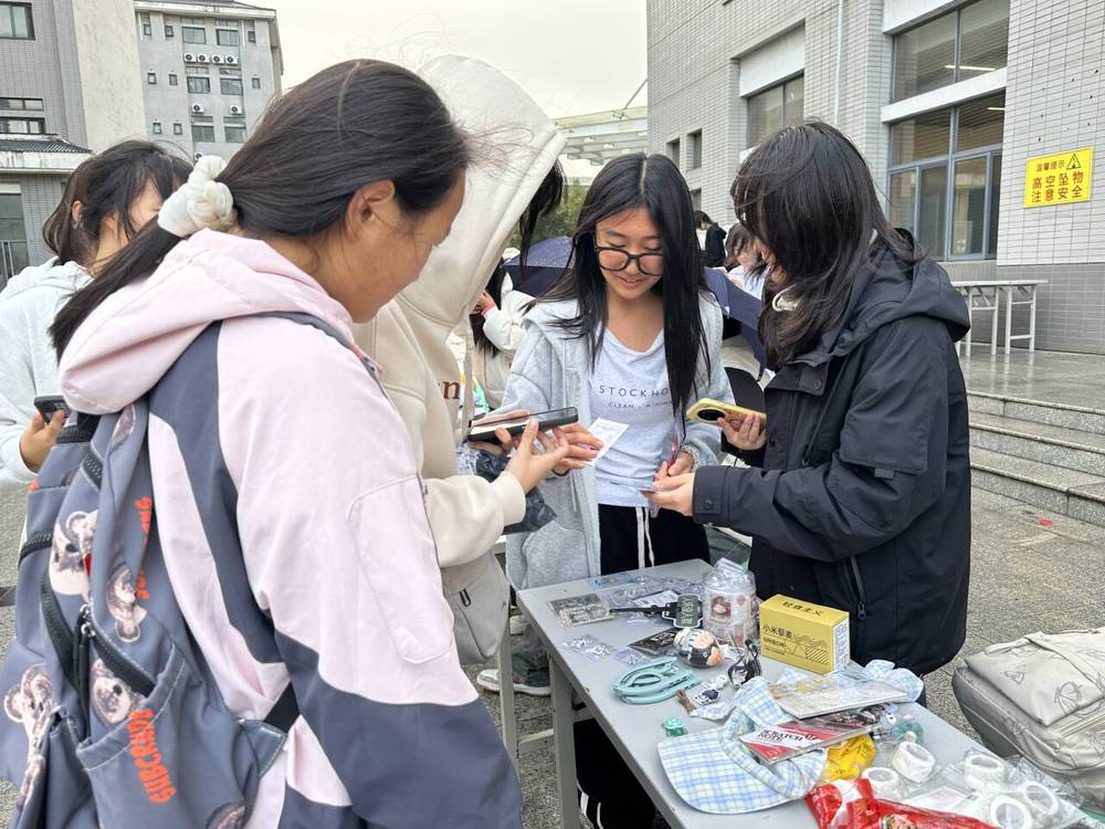 活动现场共设置十余个标准摊位,物品涵盖文学读物、文化用品、手工艺品、毛绒玩具等各类闲置物品,种类丰富、摆放整齐。各摊位设计各具巧思,部分摊主精心绘制宣传海报、设计推广标语,展现出良好的创意与实践能力。值得一提的是,不少摊主为物品附上“专属故事卡”,记录其使用经历与情感记忆,吸引众多同学驻足交流。一位参与活动的摊主表示:“通过讲述物品故事,不仅促成交易,也传递了绿色理念。”