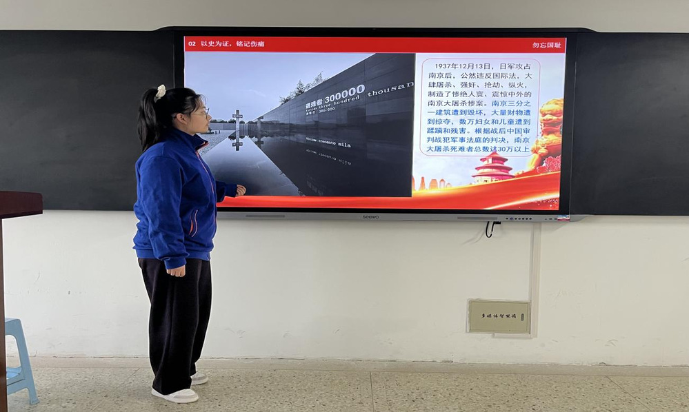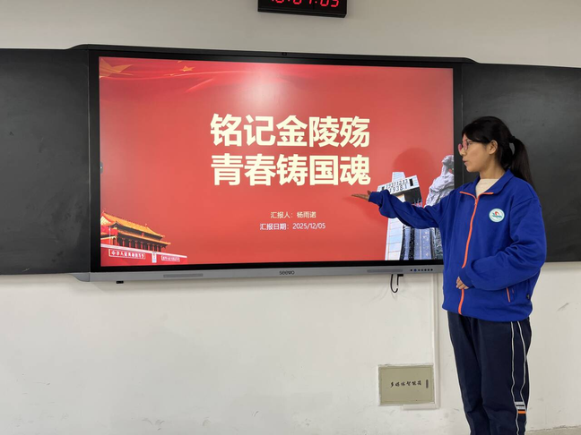 微课传薪,铸魂育人。复赛以微团课为载体,聚焦大主题下的核心子主题“铭记金陵殇,青春铸国魂”,让历史的温度在创新形式中直抵人心。选手们打破传统演讲的边界,用更具沉浸感的方式,让苦难与警示“活”了起来:有人以“史料辩读”的方式,对比不同文献中南京城破的细节,“昭昭前事,惕惕后人”不再是一句文字,而是落在每个人眼底的震撼、刻在心底的警示。