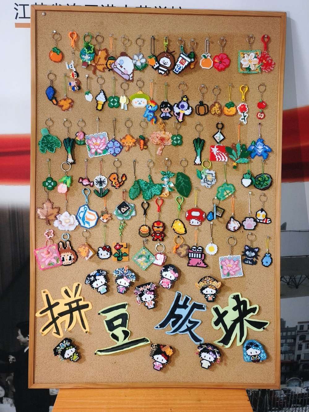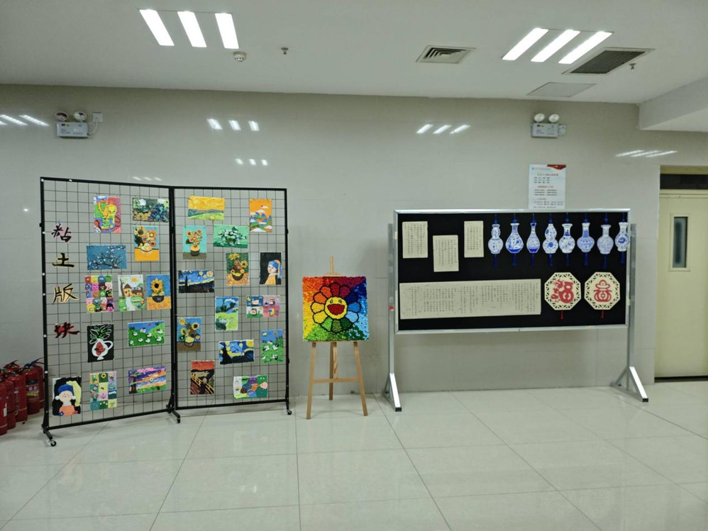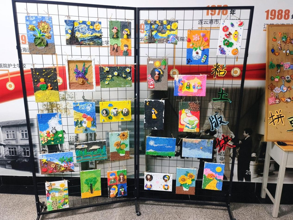 硬笔书法展区墨香四溢,学子们以笔为媒,书写经典名句等内容,楷书端庄工整,行书飘逸流畅,笔锋流转间尽显汉字之美与岐黄文化的博大精深。黏土画展区充满童趣与巧思,同学们以世界名画等经典为蓝本,用色彩斑斓的黏土塑造出生动画作。最具专业特色的当属拼豆展区,成为展览的焦点。学子们巧妙运用不同颜色的颗粒拼贴出灵芝、玫瑰花瓣、菊花瓣、枸杞等天然中草药材料。每件作品都凝聚着学子们的匠心巧思,让观众在欣赏美的同时感受中医药文化的独特魅力。