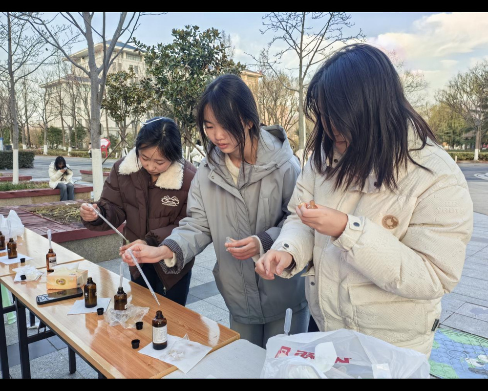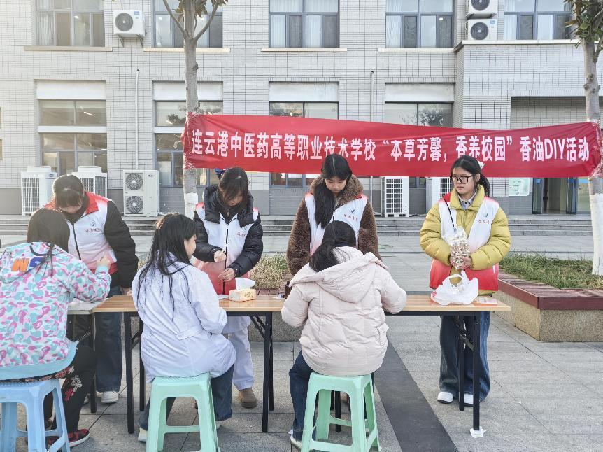 为弘扬中医药文化,提升学生专业实践能力与职业认同感,让学生在实践中切身感受中医药的实用价值与文化魅力,在茯苓园门口举办了“本草芳馨,香养校园”草本润肤油DIY活动。