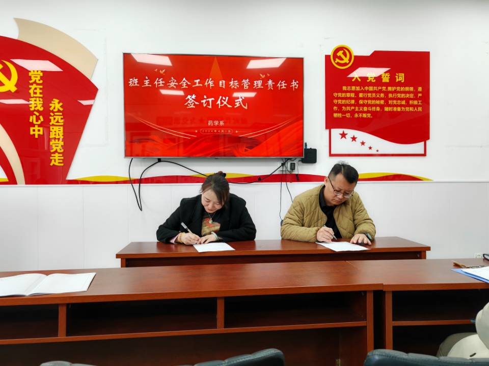 会上,药学系党支部书记刘钊与全体班主任签订了《2024年班主任安全目标责任书》。