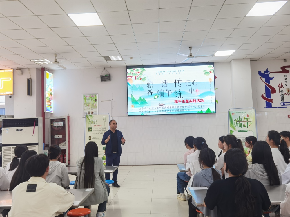 粽叶飘香,又是一年端午至。为弘扬中华民族优秀传统文化,厚植家国情怀,丰富师生文化生活,6月5日下午,学校总务处、药学系联合康健餐饮管理有限公司在茯苓园一楼开展“粽香话端午 传统记心中”主题实践活动。学校党委委员、纪委书记苏根林、副校长袁荣高、胡玉涛、总务处和药学系负责人以及药学系师生代表50余人参加活动。