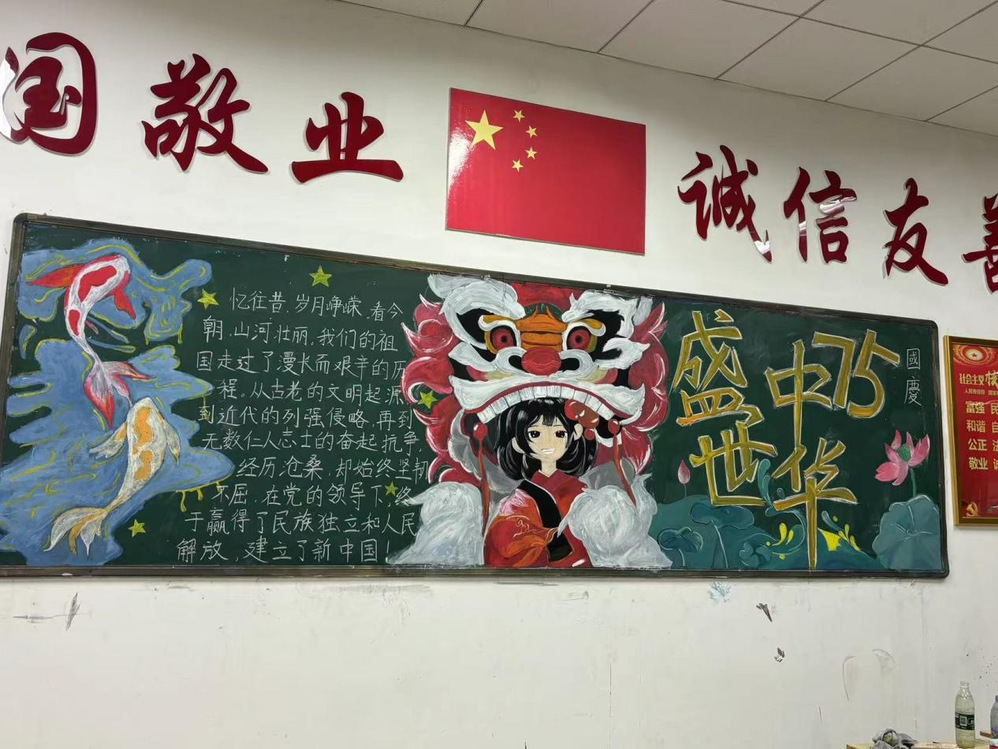 活动期间,各班级积极参与,精心设计。板报从主题选定到版面设计,再到内容编写和最后的绘制,每个步骤都经过了反复的讨论和修改,形式多样,各具特色。本次板报展示活动,从不同角度展示了75年来国家在党的领导下所取得的巨大成就,真挚地表达了同学们对祖国的美好祝福,展现了师生积极向上的精神文明风貌。