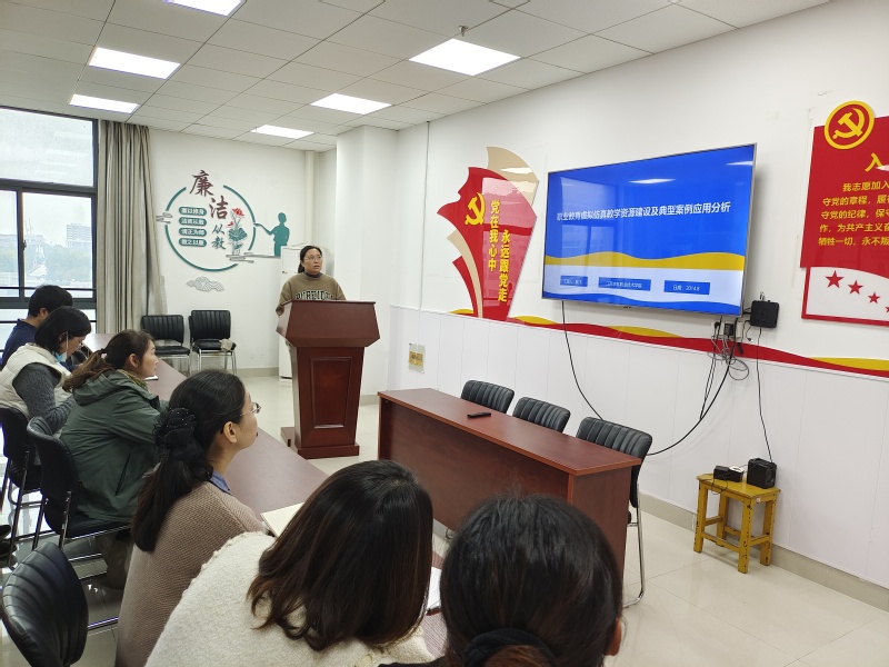 活动中,药化教研室主任杨春与教师们共同探讨了理虚实一体化在线资源开发的路径以及“五金”新基建背景下职教专业教学资源库建设的逻辑等问题。药学实验中心教研室主任惠捷围绕虚拟仿真实训基地建设,介绍了动作捕捉系统、沉浸式VR交互系统、体感互动等仿真系统的原理,分享了立足于课程标准的协同开发、自主开发、校企联合立体开发策略,并与教师们进行了深入地研讨与交流。