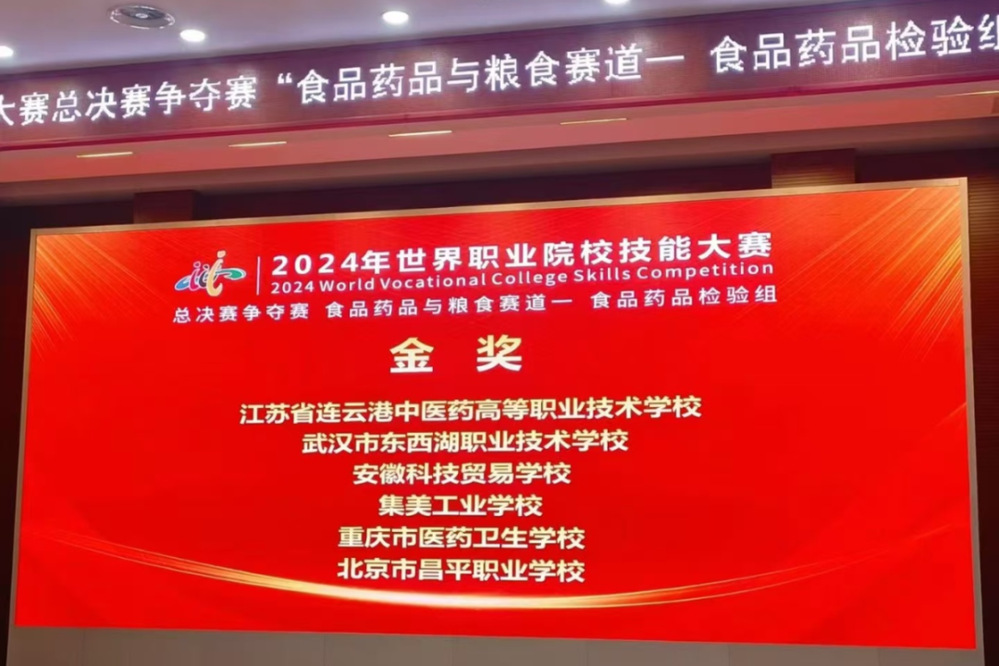 10月23日至26日,2024年世界职业院校技能大赛总决赛争夺赛食品药品与粮食赛道(食品药品检验组)在芜湖职业技术学院举行。由学校药学系教师刘世君、苟琼心精心指导的药学专业孙笳玮、周敏慧、王文雅三位同学组成的代表队,作为代表江苏省的两支队伍之一,与来自全国60支参赛队伍激烈角逐,最终凭借扎实的专业知识、精湛的技能操作和出色的团队精神,从200余名选手中脱颖而出,以赛项第一名的优异成绩斩获金奖,顺利晋级排位赛,这是江苏省中职组首支入围排位赛的参赛队。