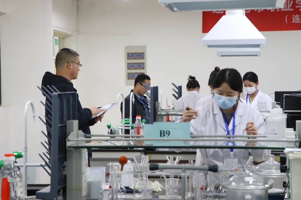 食品药品检验竞赛共有3所职业学校的41名师生选手参赛,本赛项包括技能操作和展示讲解两部分,主要考查选手食品药品检验基本专业知识,考察标准溶液的配制及标定、样品制备、试样测定及结果分析的操作技能,常用检验仪器的使用技能和数据处理、结果分析能力,培育选手的职业素养和工匠精神。