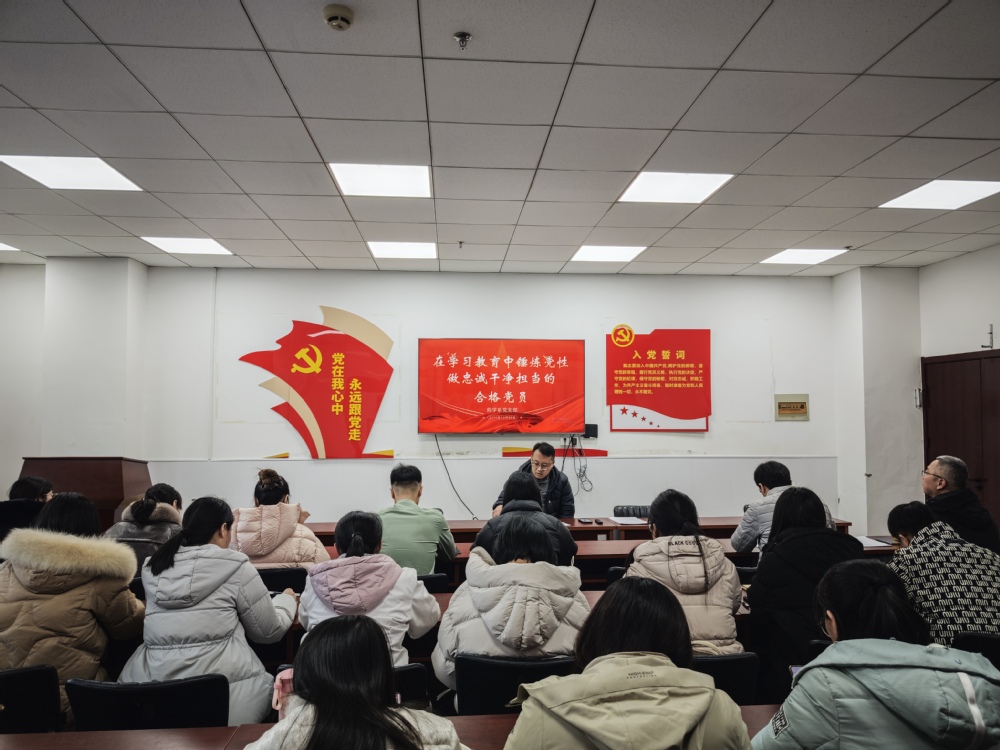 为持续强化党员队伍建设,筑牢基层党组织战斗堡垒,12月30日,药学系党支部召开全体党员大会,讨论并表决王一岚等3名预备党员的转正事宜。药学系党支部书记刘钊主持会议,并以“在学习教育中锤炼党性,做忠诚干净担当的合格党员”为题讲授党课。