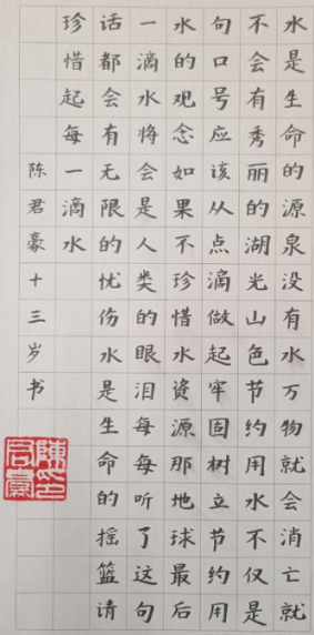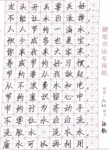 各班级围绕“中国水周”为主题,开展节水、爱水、绿色环保为主题的书画作品征集。书法作品创作以毛笔或硬笔书法形式,尺幅不限。绘画作品以A4纸横向创作,种类不限。请统一在作品右下角注明作者信息(系、班级、姓名)。参考作品见附件1。