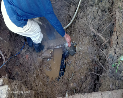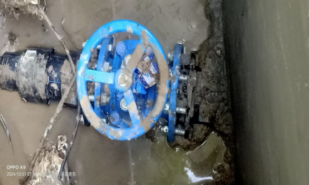 2024年10月29日发现益智楼西北侧水管漏水现象,随即通知施工队下午进行开挖查找漏水点。因找不到该处控制阀门,经研究决定于10月30日晚22:00时停泵,全校停水进行抢修,渗漏处截断,熔接阀门,漏水处设置阀门井,以便后续控制和检查。自30日22:00至31日2:15完成维修并恢复全校供水。