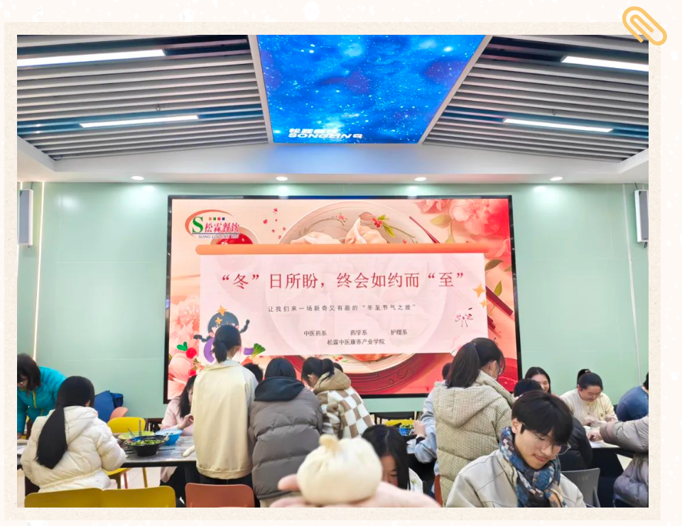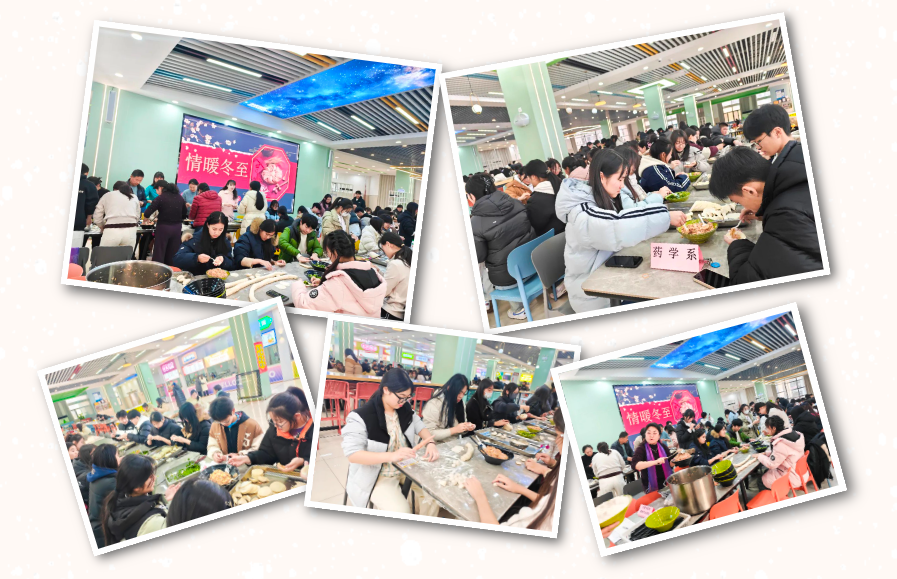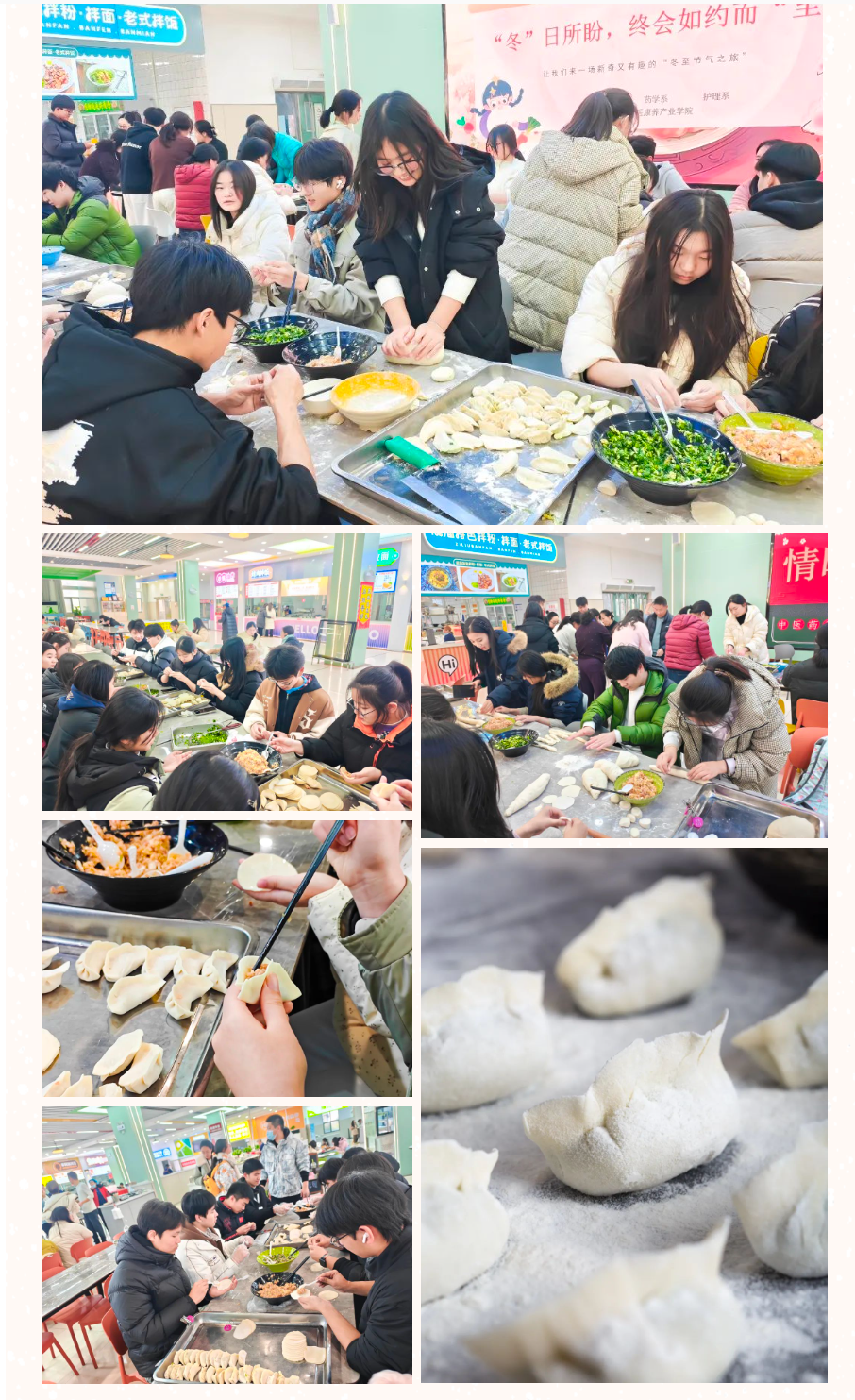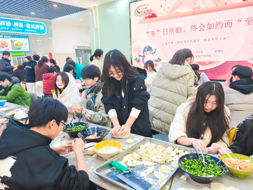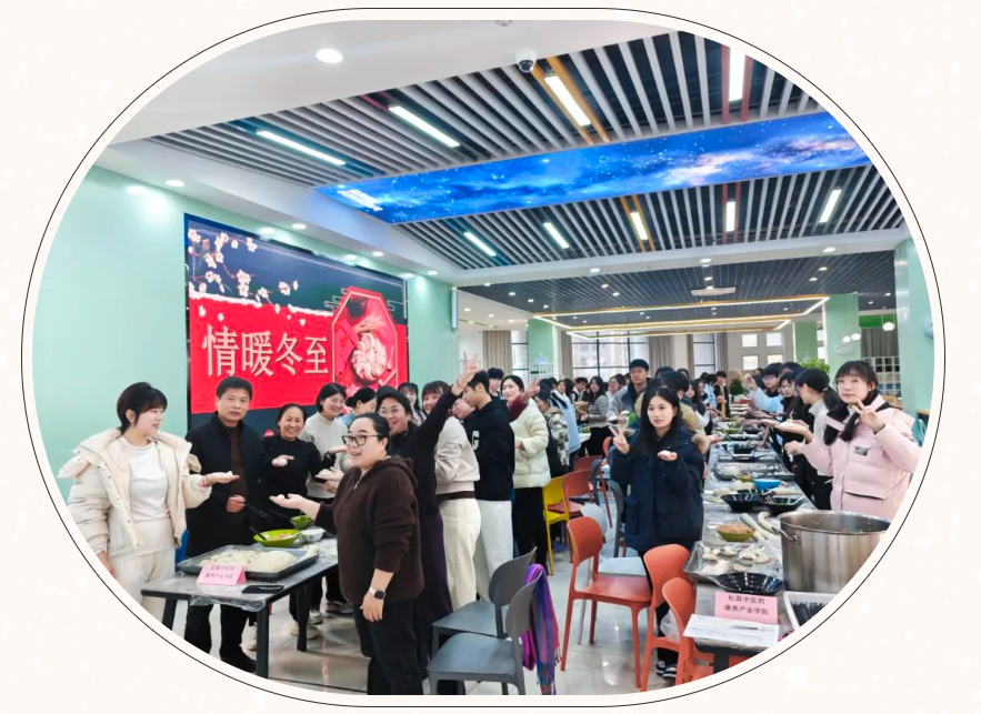 温馨的冬日午后,连云港中医药高等职业技术学校二食堂——松霖餐饮精心筹备的“饺香情浓·欢聚冬至”包饺子活动,在一片欢声笑语中拉开帷幕。本次活动吸引了来自中医药系、药学系、护理系、松霖中医康养康养产业学院的近三百名师生热情参与,共同见证了这一充满温情与创意的美好瞬间。