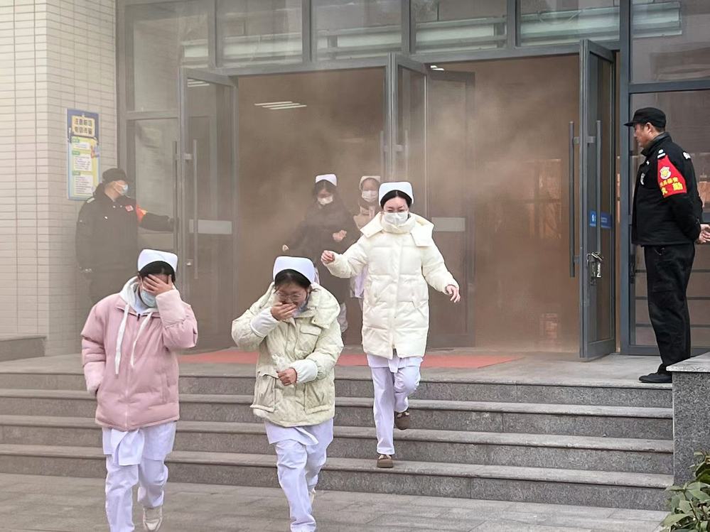 演练当日,随着警报声的响起,任课老师们迅速化身“安全引导员”,按照预案带领学生从规定的疏散通道有序撤离。学生们牢记演练要领,弯腰低姿、掩住口鼻,迅速而有序地撤离到安全区域。各楼层负责引导的保安坚守岗位,指挥若定,确保了撤离过程的安全与有序。