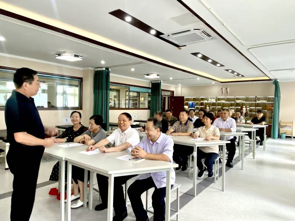在康养中心,品味胡玉涛副校长开发的本草咖啡之余,在学校精心准备的教室里,校友们重温课堂时光,聆听班主任纪青华老师的教诲,仿佛回到四十年前的课堂。当年大家亲切的冯维希老师(原副校长)的一声“上课”,老校友们瞬间集体起立,时光瞬间回到40年前,青春的课堂记忆虚实相间,一幕幕呈现在校友的眼前、脑海。