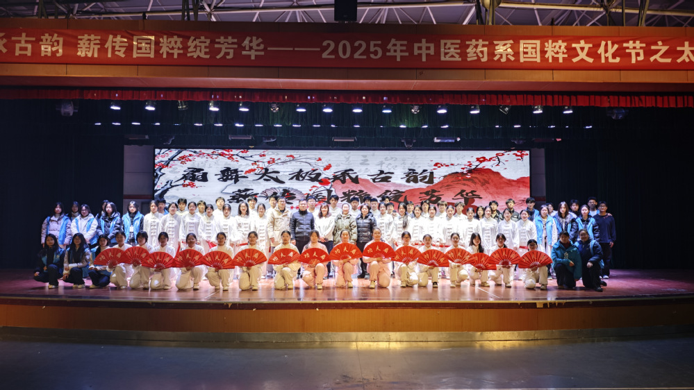 为传承中华优秀传统文化,弘扬国粹精神,促进中医药文化与传统体育文化的深度融合,2025年12月25日16:00时,中医药系在茯苓园三楼成功举办国粹文化节之太极扇比赛。2025级师生齐聚一堂,共同见证这场刚柔并济、古韵盎然的文化盛宴。