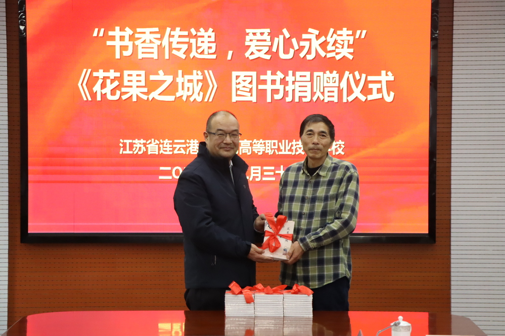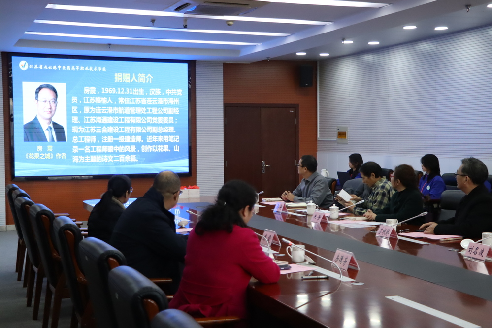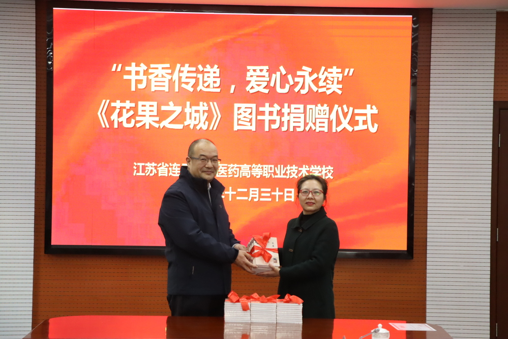 2025年12月30日下午4时,以“书香传递,爱心永续”为主题的图书捐赠仪式在我校远志楼八楼大会议室隆重举行。江苏三合建设工程有限公司总工程师房震先生携夫人孟胜薇女士,共同向我校图书馆、“吴舟全国老药工工作室”及与会人员捐赠了由房震先生创作的春风文艺出版社出版的诗文集《花果之城》50余本。校党委委员、纪委书记苏根林,现教中心主任兼图书馆馆长王芳,全国老药工吴舟先生,中医药系主任刘名波等领导、及师生代表出席了捐赠仪式。仪式由中医药系党支部书记房德芳主持。
