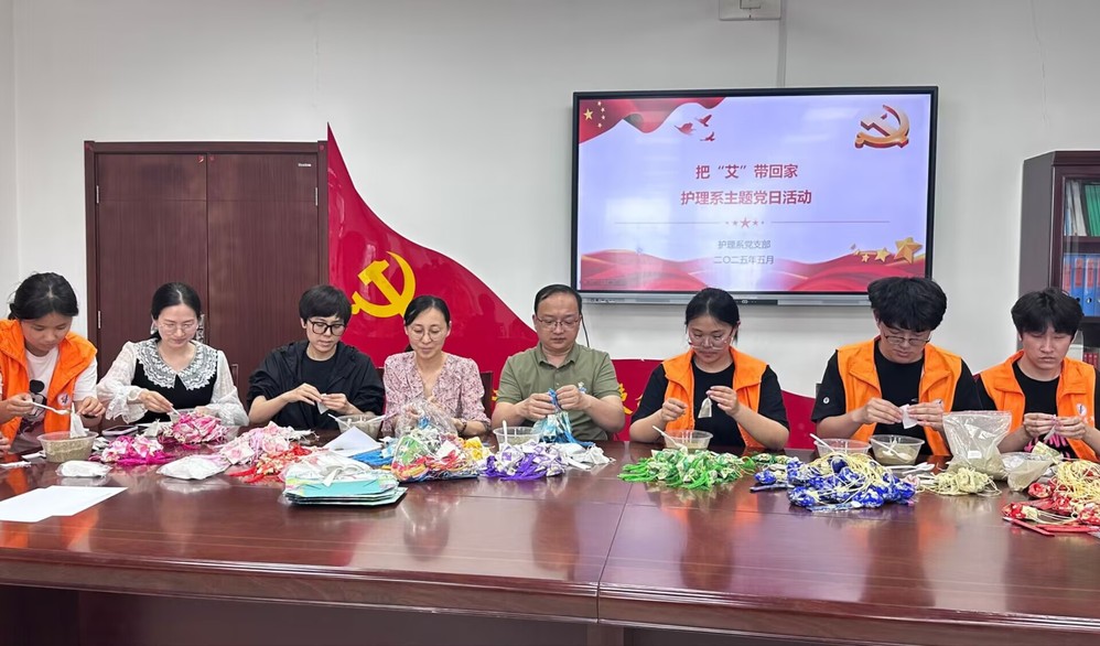 为了弘扬中华传统文化,传递系部温暖关怀,护理系于5月30日上午在南丁格尔广场举办《把“艾”带回家》主题党日活动。此次活动以传统民俗——端午节为载体,为老师们准备了艾草与手工香包,让中华优秀传统文化在现代校园中焕发新的生机。