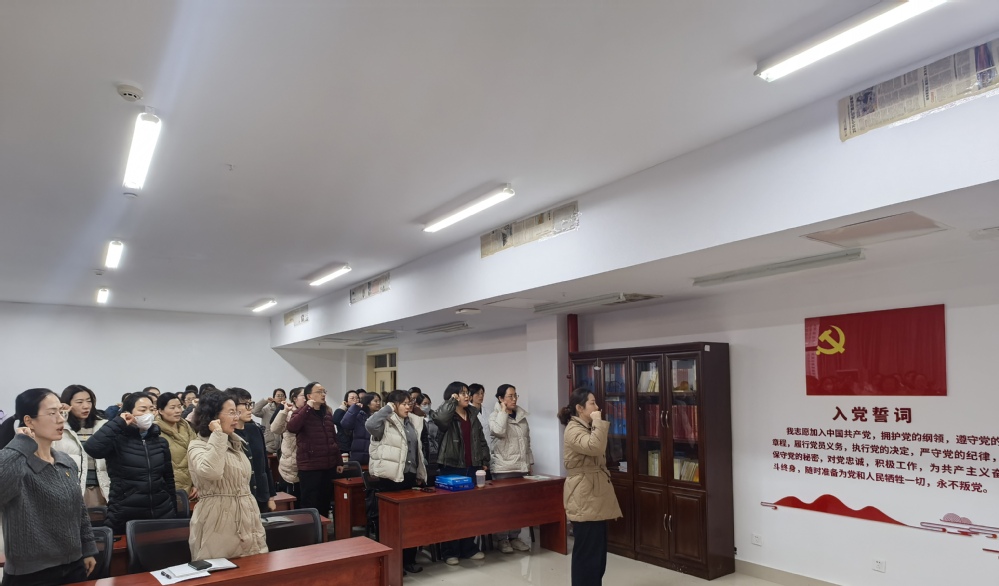 2025年12月30日,护理系党支部召开党员大会,会议严格落实党员发展工作要求,审议接收任慧莹等22名同志为中共预备党员,讨论武俐君等3名同志转正事宜。校党委委员、副校长胡必梅同志到会指导,全系党员参会。